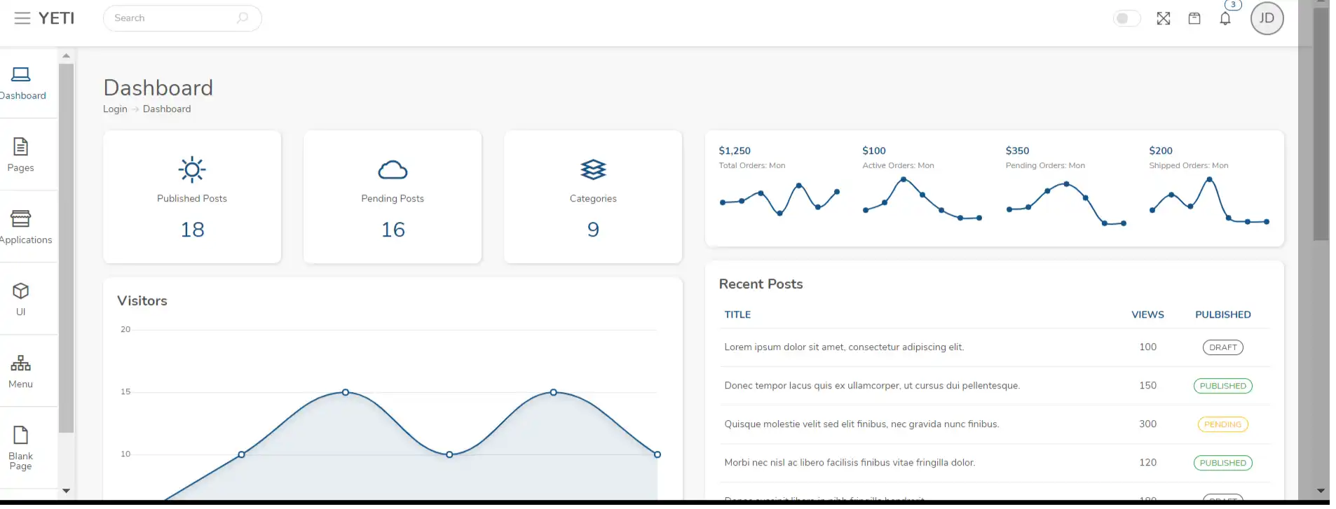 The Yeti Admin theme was created with simplicity in mind, and it's no different with all of this theme. To meet any Admin and Web App demands, all pages and apps have been carefully designed. In Vanilla JS, all JavaScript functions are well-written. Dependencies are minimized to the maximum extent practicable. CSS framework Tailwind CSS is utilized in its development (v2.0).