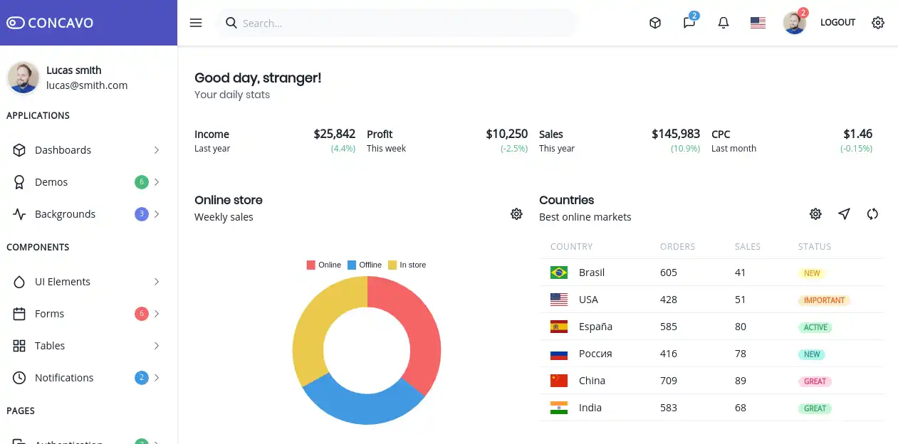Concavo Theme is simple. React, Redux, and Next.js are used to create this complex admin template using SASS. It includes more than 100 components in every layout, as well as widgets and custom-made reusable components to help you get started with your next React project or application quickly.