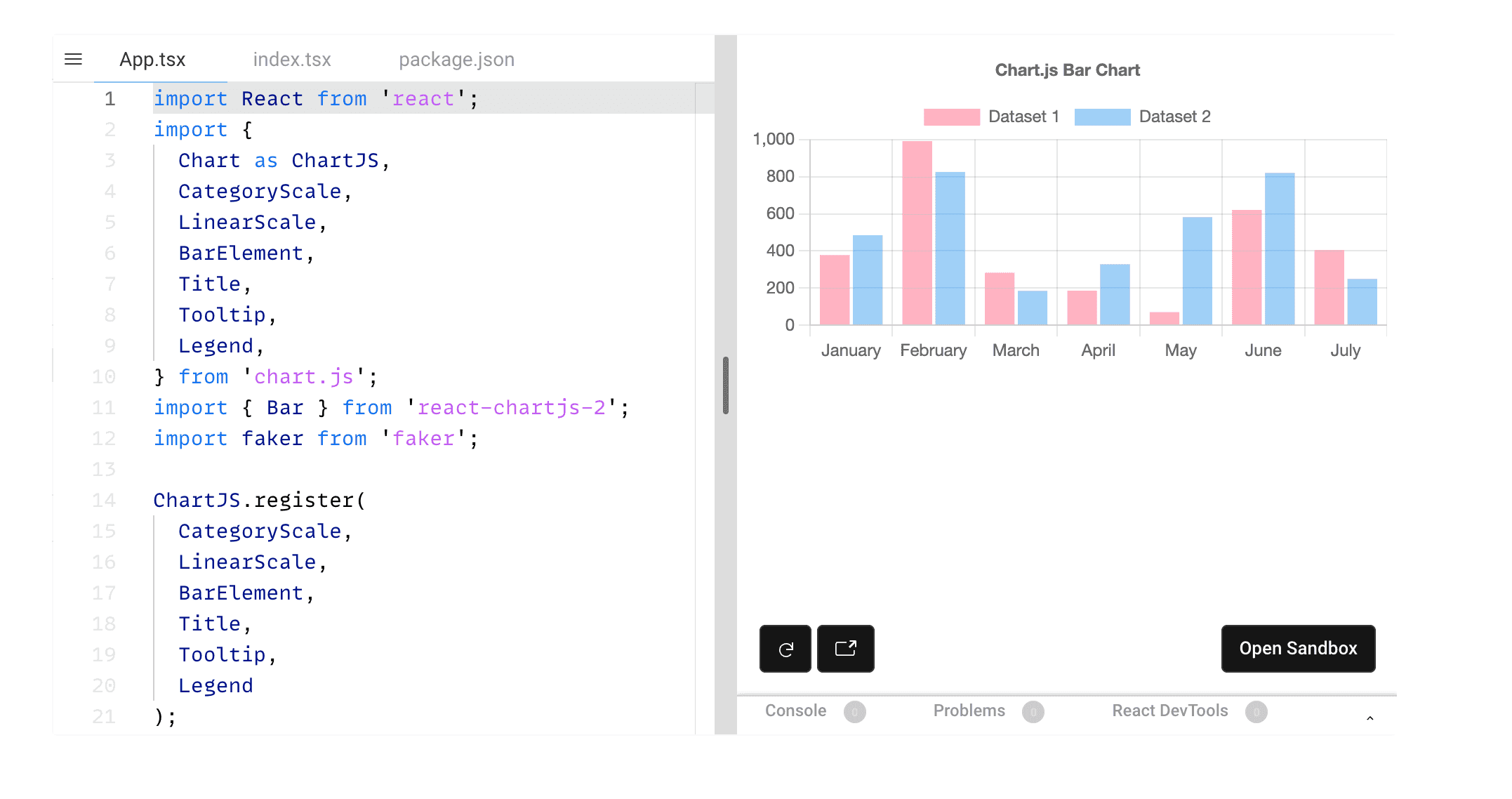 If you've ever used Chart.js in React, you shouldn't have a learning curve when using this library. reactchartjs2 is a React wrapper for the popular JavaScript library Chart.js.