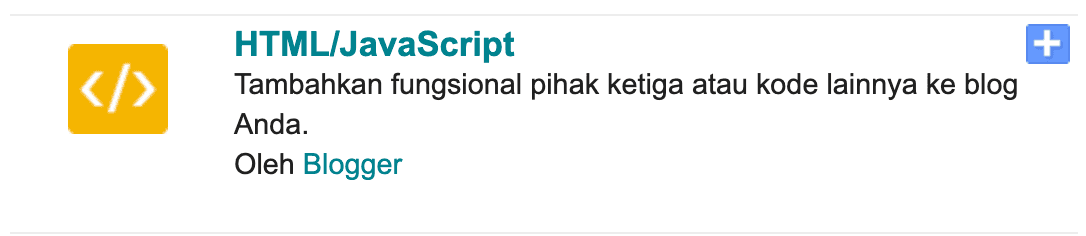 Untuk memasang widget kawal corona di Blogger/Blogspot kalian dapat masuk ke halaman Tata Letak, lalu klik tombol "Tambahkan Widget". Saat muncul popup, kalian pilih menu HTML/JavaScript ini: